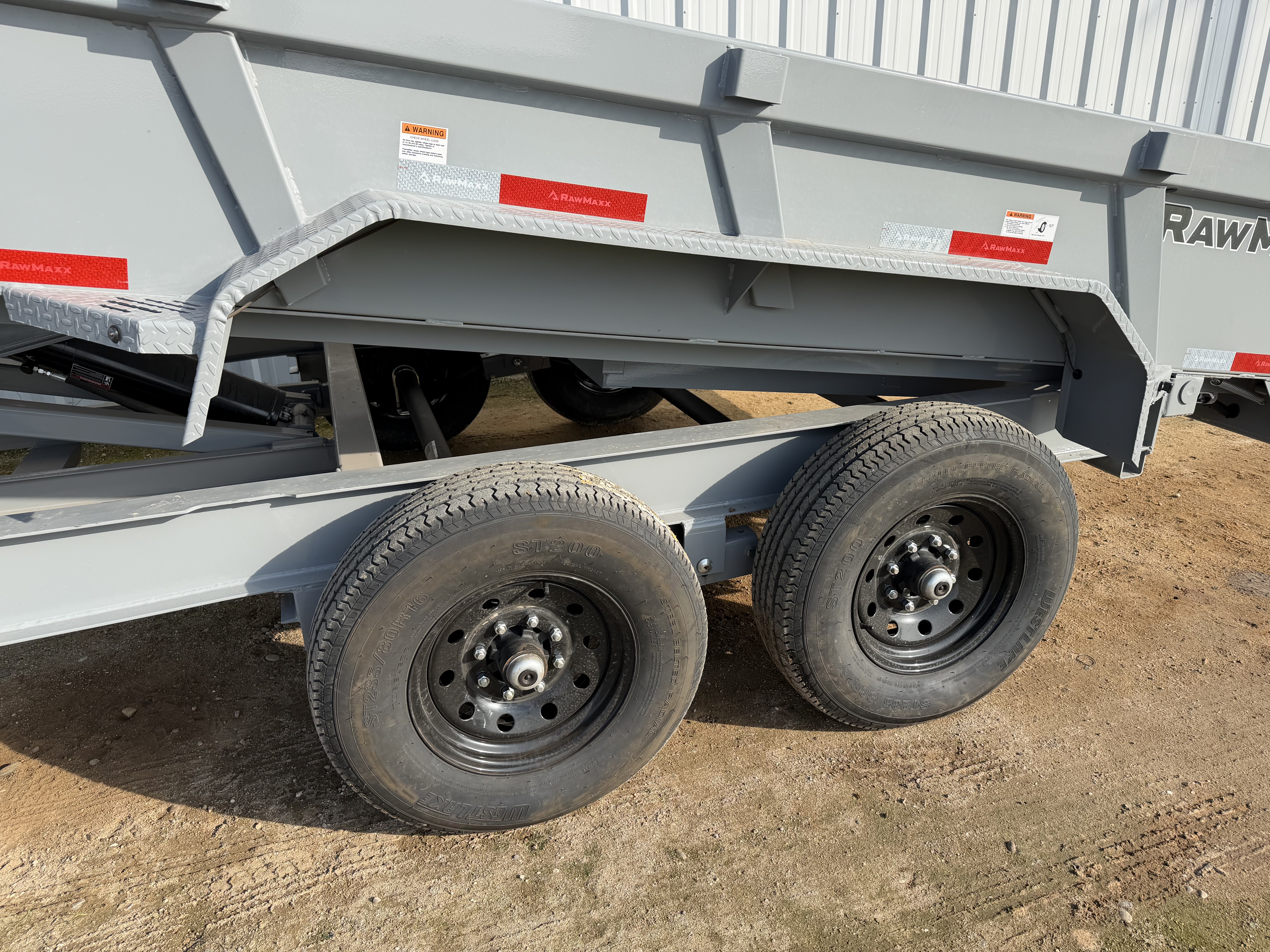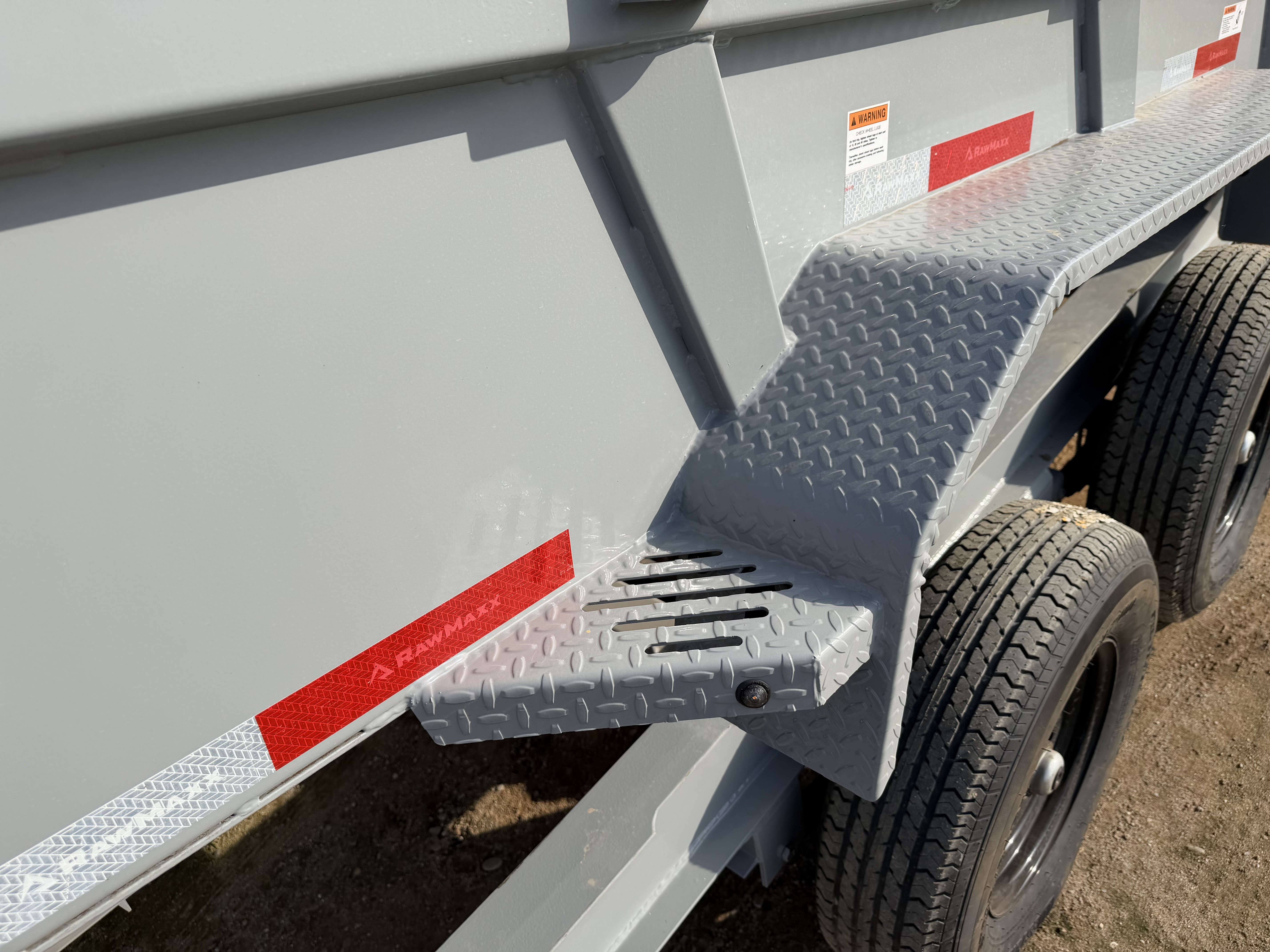 The LPX dump trailer, a reliable and sturdy option for hauling heavy loads. With its 5′ x 5″ x 3/8″ angle type tilt frame and 3″ channel cross-members with 16″ spacings, this trailer can handle even the toughest jobs. The scissor lift system, powered by a KTI 12V hydraulic pump, provides smooth and easy operation. The trailer’s safety features, including 3/8″ G70 safety chains and DOT-approved LED lights, ensure the safety of both the driver and other vehicles on the road. The 3-1 spreader gate with EZ slam door latches makes loading and unloading a breeze, while the 6′ slide-in channel ramps allow for easy access. The LPX also includes a convenient tongue tool box and stake pockets for extensions, adding to its versatility. With a manual tarp kit and a spare tire mount located on the right side, this trailer is ready for any job.