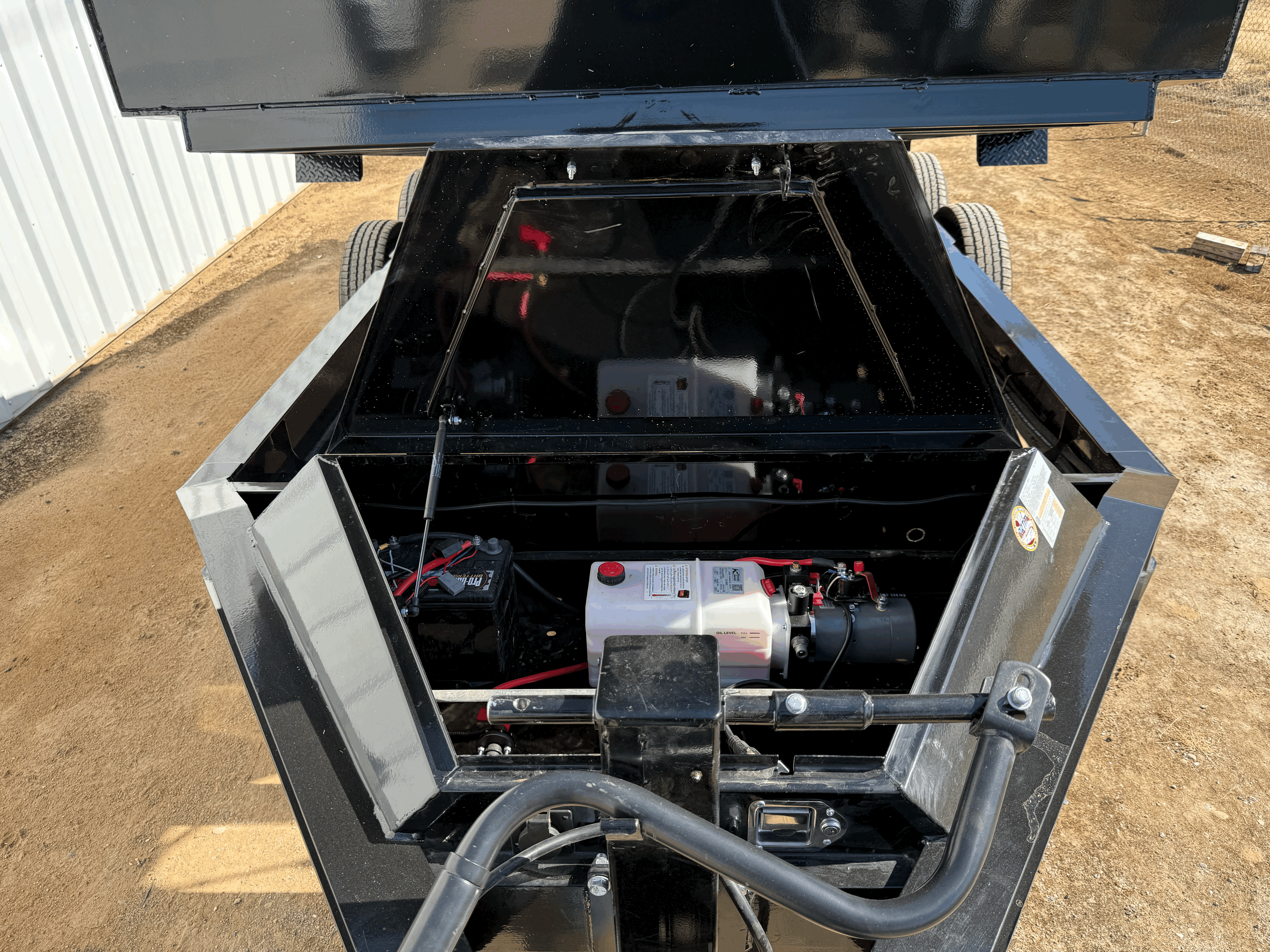 The LPX dump trailer, a reliable and sturdy option for hauling heavy loads. With its 5′ x 5″ x 3/8″ angle type tilt frame and 3″ channel cross-members with 16″ spacings, this trailer can handle even the toughest jobs. The scissor lift system, powered by a KTI 12V hydraulic pump, provides smooth and easy operation. The trailer’s safety features, including 3/8″ G70 safety chains and DOT-approved LED lights, ensure the safety of both the driver and other vehicles on the road. The 3-1 spreader gate with EZ slam door latches makes loading and unloading a breeze, while the 6′ slide-in channel ramps allow for easy access. The LPX also includes a convenient tongue tool box and stake pockets for extensions, adding to its versatility. With a manual tarp kit and a spare tire mount located on the right side, this trailer is ready for any job.